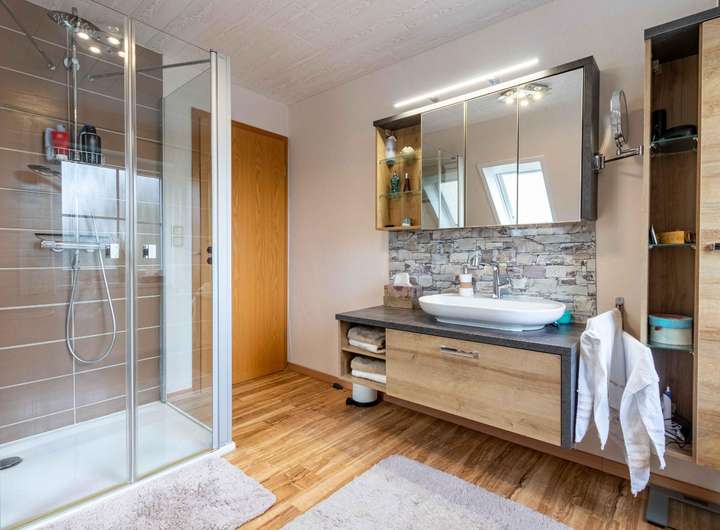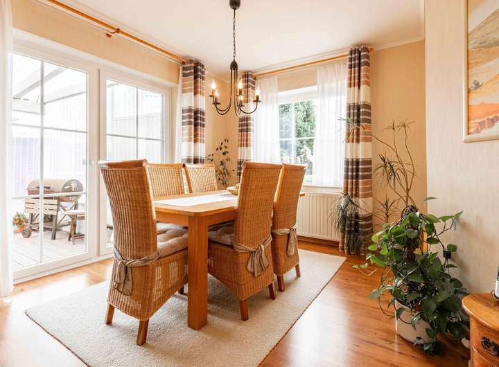 Zum Verkauf steht ein vielseitiges Immobilienangebot, bestehend aus einem gepflegten Einfamilienhaus aus dem Jahr 1994 sowie einer zusätzlich auf dem Grundstück befindlichen Doppelhaushälfte aus dem Jahr 1950. Beide Einheiten sind nach dem Wohnungseigentumsgesetz (WEG) getrennt, werden jedoch gemeinsam veräußert – eine ideale Lösung für Familien, die generationsübergreifend wohnen möchten, oder Käufer mit Blick auf eine kluge Kapitalanlage. Das Einfamilienhaus bietet mit ca. 121 m² Wohnfläche ein durchdachtes Raumkonzept und überzeugt mit einer modernen, wohnfreundlichen Ausstattung. Im Erdgeschoss erwartet Sie ein großzügiger Wohnbereich, eine separate Küche, ein Hauswirtschaftsraum sowie ein Gäste-WC. Im Obergeschoss befinden sich drei gut geschnittene Schlafzimmer und ein modernes Badezimmer. Die umfassende Renovierung im Jahr 2016 sorgt für zeitgemäßen Wohnkomfort. Das Haus präsentiert sich in einem sehr gepflegten Zustand und ist sofort bezugsbereit – hier bleiben keine Wünsche offen. Die auf dem Grundstück befindliche Doppelhaushälfte mit ca. 90 m² Wohnfläche und zusätzlichem Keller bietet viel Potenzial. Erste Modernisierungsmaßnahmen wie der Einbau neuer Fenster und einer Brennwerttherme wurden bereits durchgeführt. Mit etwas handwerklichem Einsatz lässt sich hier zusätzlicher Wohnraum schaffen oder eine attraktive Mieteinnahme erzielen. Das gesamte Ensemble eignet sich hervorragend für große Familien, die gemeinsam wohnen möchten, aber dennoch Wert auf getrennte Einheiten legen. Gleichzeitig bietet sich hier eine hervorragende Gelegenheit für Kapitalanleger, die Wohnen und Vermietung unter einem Dach vereinen möchten.