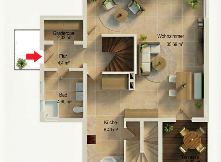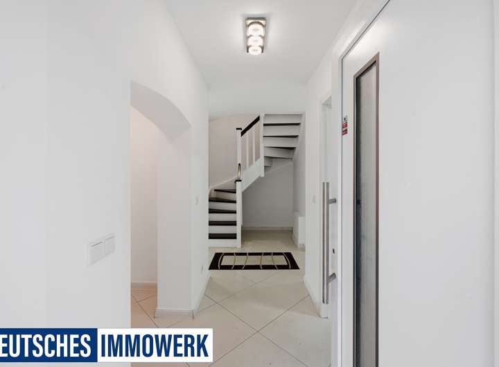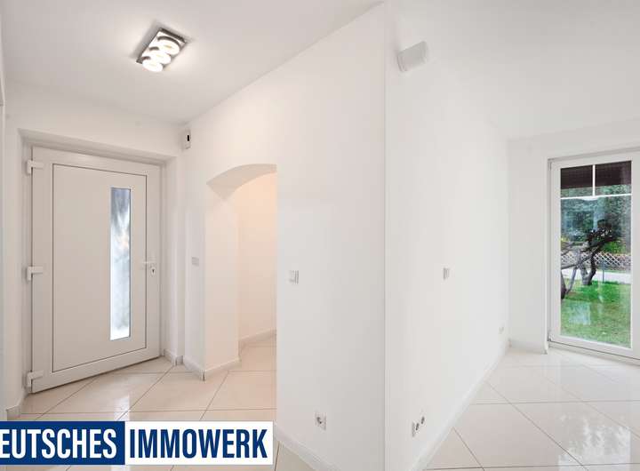 Über die ruhige Anwohnerstraße kommend, gelangen Sie direkt zum Einfamilienhaus. Auf dem Erbbaurechtsgrundstück stehen Ihnen eine großzügige Garage sowie vier Kfz-Außenstellplätze zur Verfügung, die bequemes Parken Ihrer Fahrzeuge sorgen. Von hier aus gelangen Sie direkt zum stilvollen Eingangsbereich Ihres neuen Zuhauses. Beim Betreten der Immobilie gelangen Sie zunächst in den einladenden und geräumigen Dielenbereich. Von der Diele aus gehen alle Räume mit einer zentralen Verteilerfunktion ab und bieten Ihnen somit eine exzellente Aufteilung mit großartiger Wohlfühlatmosphäre.