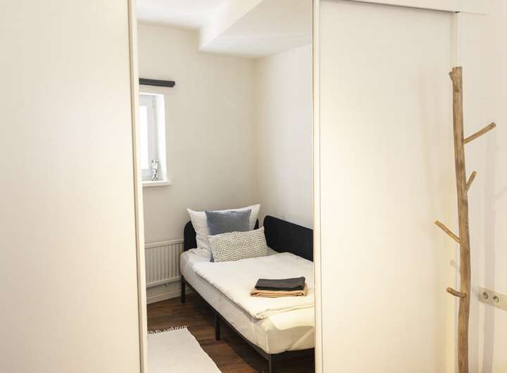 Ein weiteres Zimmer verfügt über ein Einzelbett und eignet sich ideal als Gäste-, Arbeits- oder Homeoffice-Zimmer.