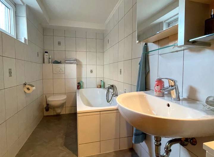 - modernes Wannen-Bad mit Waschtisch, WC, mit Fenster