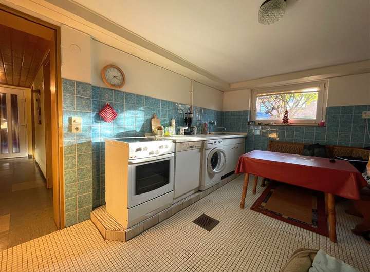 Die Immobilie ist zudem voll unterkellert. Hier befinden sich ein Hauswirtschaftsraum mit Kochgelegenheit, ein Heizungs-/Technikraum sowie Abstell- und Lagerfläche. Im Jahr 2000 wurde die Öl-Brennwertheizungsanlage erneuert. Die Kellerräume sind teils gefliest und insgesamt wirkt alles sehr gepflegt. Der Keller verfügt außerdem über eine großzügige Nutzfläche inkl. Kellerbad sowie einen Außen-Kellereingang.