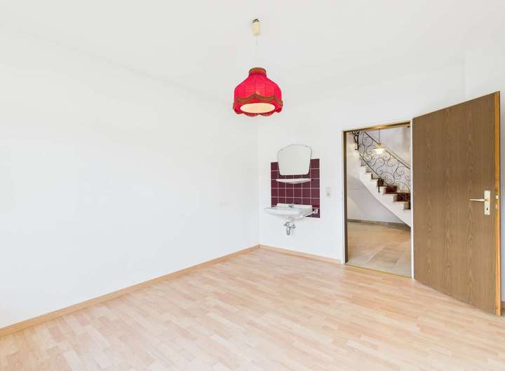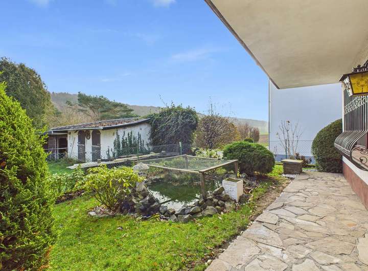 Im Untergeschoss stehen zwei weitere helle Räume zur Verfügung, die sich flexibel als Kinderzimmer, Gästezimmer oder Büro nutzen lassen. Besonders der größere Raum mit direktem Zugang in den Garten bietet einen hohen Wohnkomfort. Der Garten selbst ist liebevoll angelegt, mit verschiedenen Grünbereichen, einem kleinen Teich und Blick auf weite Felder. Hier können Familien, Tierliebhaber oder Hobbygärtner ihren eigenen Ruhepol gestalten. Durch die Hanglage wirken die einzelnen Bereiche besonders geschützt und privat. Zusätzliche Nutzflächen wie der Hauswirtschaftsraum und der Heizungsbereich sowie der direkte Zugang zur Garage runden das Angebot ab.