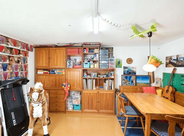 Im Untergeschoss steht ein ausgebauter Hobbyraum zur Verfügung, der vielseitig als Fitness-, Freizeit- oder Arbeitsbereich genutzt werden kann.