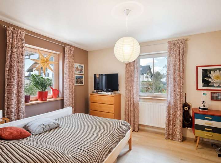 Auf ca. 105 m² Wohnfläche und einem ca. 230 m² großen Grundstück bietet die Immobilie insgesamt 4 Zimmer, darunter 3 Schlafzimmer und 2 Badezimmer.
