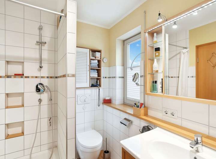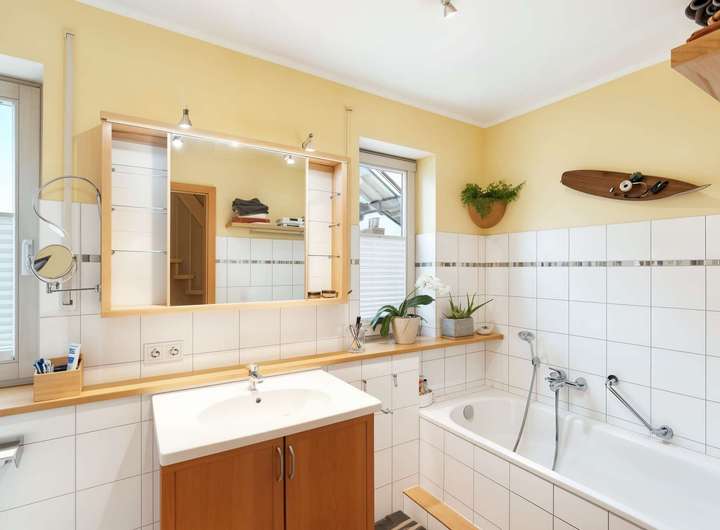 Das Dachgeschoss bietet großzügigen Raum für individuelle Nutzungsmöglichkeiten – ob als zusätzliches Schlaf-, Kinder-, Gäste- oder Arbeitszimmer. Ein weiteres Badezimmer mit Whirlpoolbadewanne unterstreicht den hohen Wohnkomfort auf dieser Ebene.