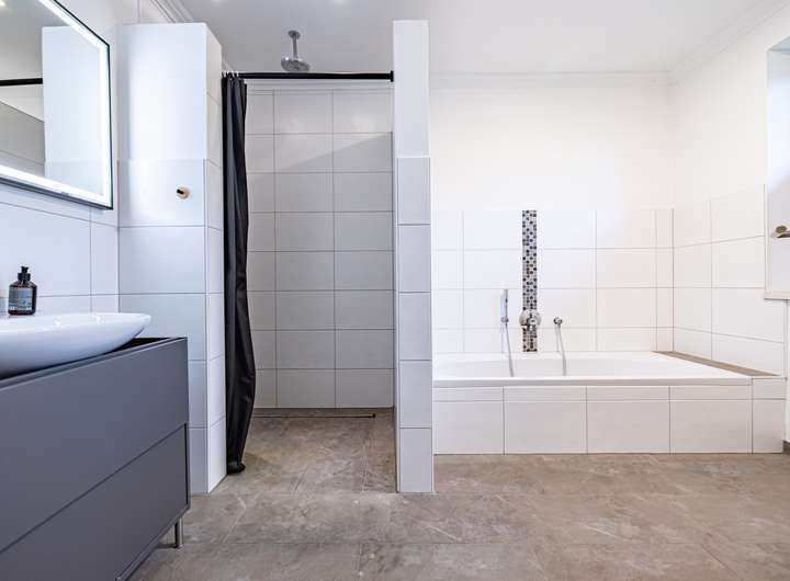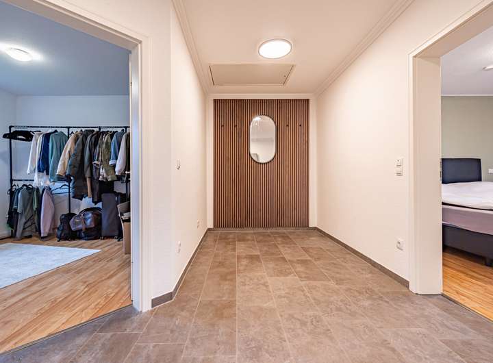 Das moderne Vollbad mit hochwertiger Ausstattung und edlen Fliesen lädt täglich zu kleinen Wellnessmomenten ein. Ein gemütliches Schlafzimmer sowie ein weiteres Zimmer, das sich ideal als Kinderzimmer, Gästezimmer oder Arbeitszimmer eignet, runden das Raumangebot ab.