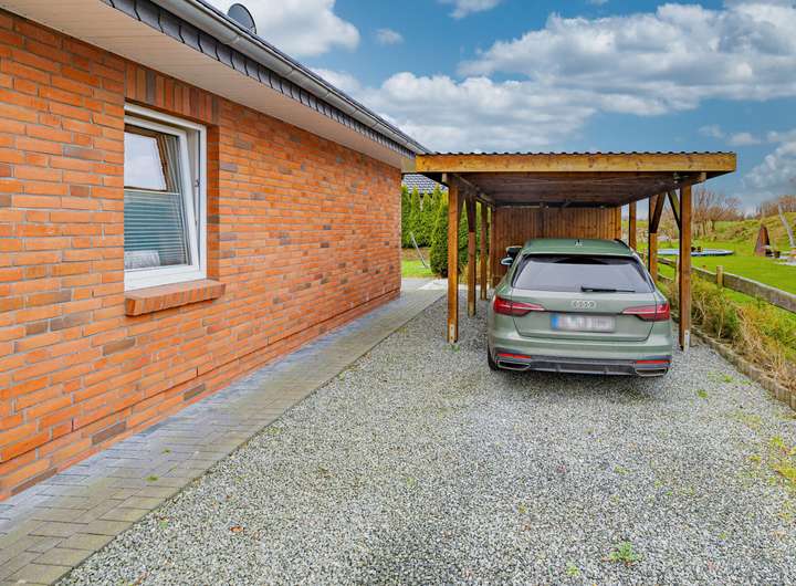 Auch im Außenbereich bleiben keine Wünsche offen. Ein eingefriedeter Garten, ein Carport mit praktischem Schuppen und genügend Raum für Gartenfreuden, Fahrräder und Alltagsutensilien machen die Immobilie rundum komplett.