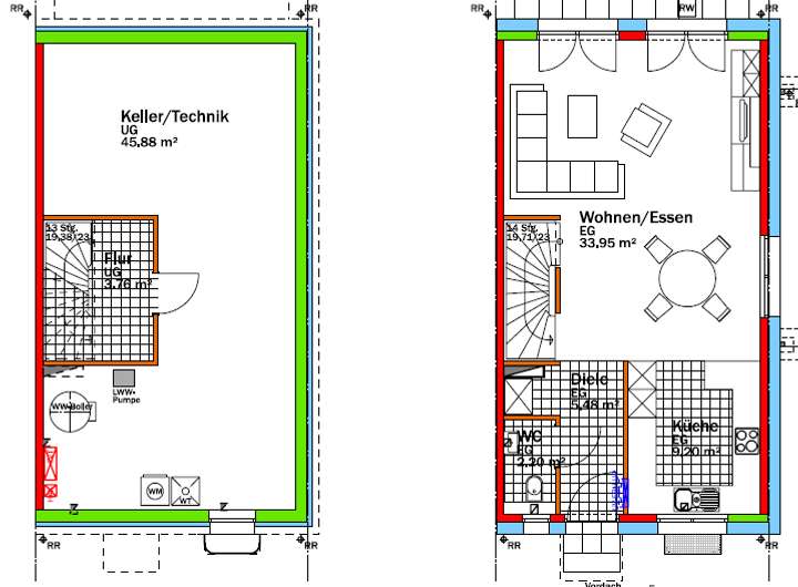 Klimafreundliche A+ Doppelhaushälfte komplett Unterkellert