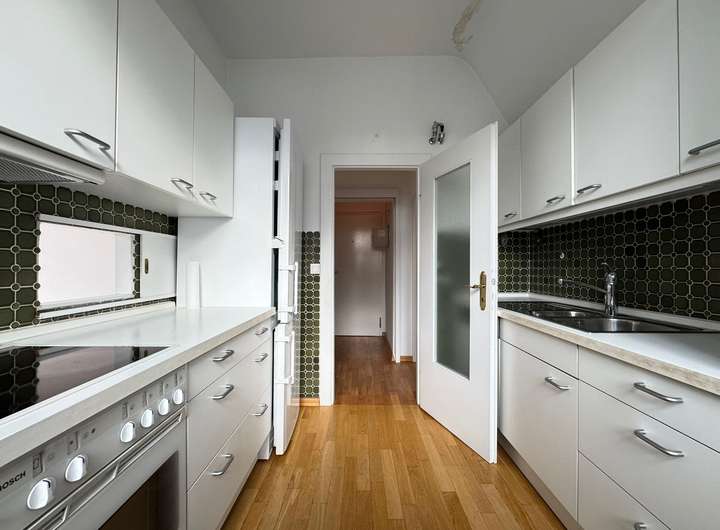 • Praktische Einbauküche (EBK) mit funktionalem Zuschnitt und Durchreiche zum Essbereich