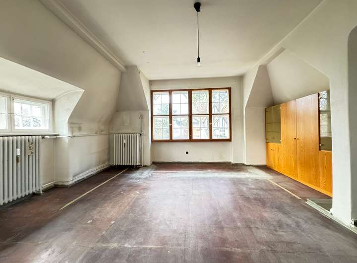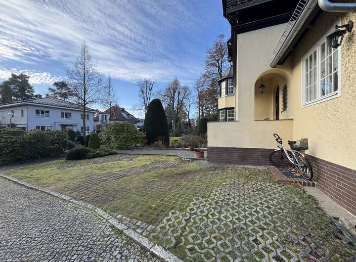 Die Maisonette-Wohnung ( 1.OG und Dachgeschoss ) befindet sich in einer imposanten, denkmalgeschützten Villa aus dem Jahr ca. 1911 auf einem großzügigen Grundstück von ca. 1.254 m². Die Villa ist im großzügigem Landhausstil von dem Architekten "Heinrich Straumer" erbaut, der ebenfalls den Funkturm erbaut hat.