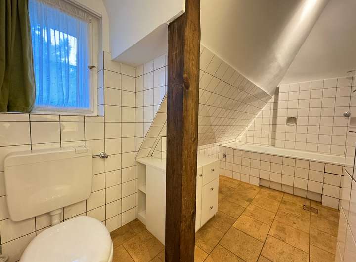 • Ein Wannenbad mit leichten Dachschrägen, die dem Raum einen gemütlichen Charakter verleihen