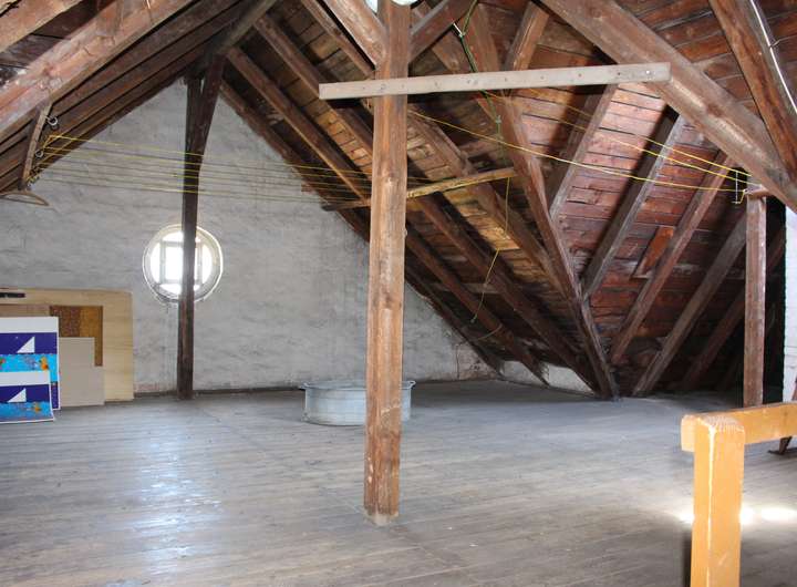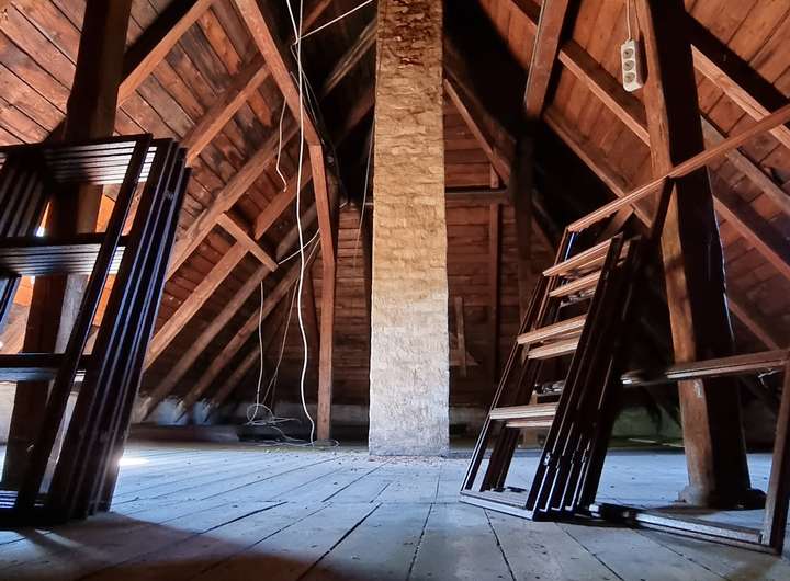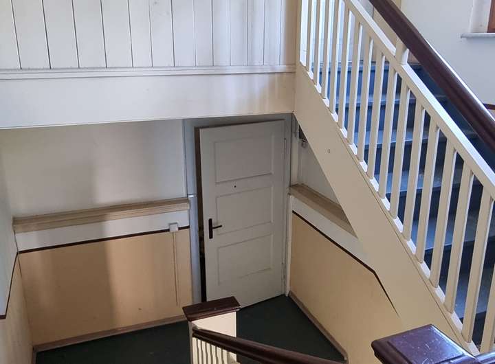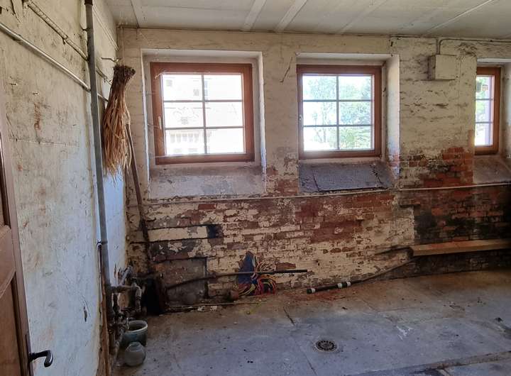 Die rechte Seite wurde als Wohnung über zwei Etagen genutzt - ähnlich einem Reihenendhaus. Auch hier gibt es einen Dachboden und einen von außen zugänglichen Keller.