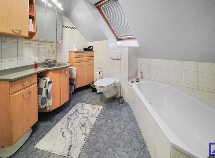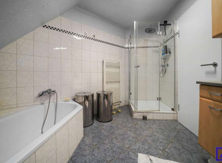 Die Immobilie verfügt über 1,5 Geschosse und bietet insgesamt 6 Zimmer, darunter 4 gemütliche Schlafzimmer, die für eine Familie oder als Gästezimmer genutzt werden können. Das Badezimmer ist mit einer Badewanne und einer Dusche ausgestattet und verfügt zusätzlich über ein Gäste-WC, was den Komfort erhöht. Neben den Wohnräumen gibt es auch einen praktischen Abstellraum und eine Vorratskammer.