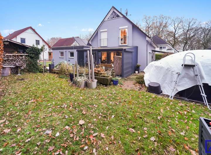 Die vollständige Erschließung des Grundstücks sorgt für eine bequeme Zugänglichkeit. Ein Highlight des Objekts ist der Garten inklusive Swimmingpool, der zum Entspannen und Verweilen einlädt, sowie der Wintergarten inklusive Heizstrahler, in dem man die warmen und kalten Stunden des Tages genießen kann.