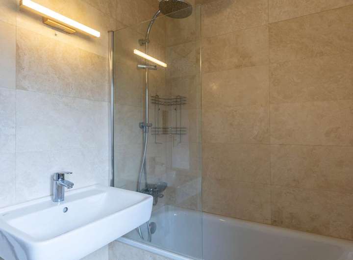 Das Haus zeichnet sich durch eine hochwertige Ausstattung und den sehr gepflegten Zustand aus. Das 2017 sanierte Gäste-WC im Erdgeschoss sowie die beiden im selben Jahr neu gestalteten Tageslichtbäder bieten zeitgemäßen Komfort: Das modern geflieste Hauptbadezimmer verfügt über hochwertige Sanitärobjekte - WC, Badewanne mit Duschglaswand und breitem Handwaschbecken, das schicke Badezimmer im Dachgeschoss ist mit einer Duo-Badewanne, Handtuchheizkörper, WC und Handwaschbecken ausgestattet.