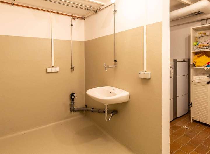 Im Keller findet sich ein ausgebauter Hobbyraum, ein Kellerraum sowie eine separate Waschküche – ideal für vielseitige Nutzungsmöglichkeiten und zusätzlichen Stauraum.