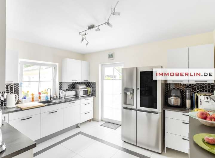 Dieses stilvolle Einfamilienhaus ist ein beeindruckendes Bauwerk, das einen angenehmen Wohnkomfort bietet. Die klare, formschöne und funktionale Architektur sowie die exquisiten Ausstattungen bilden eine ausgezeichnete Synthese für das Wohlgefühl. Diese Immobilie ist architektonisch hervorragend gezeichnet: Im Erdgeschoss befindet sich gegenüber der modernen Einbauküche, von der auch die Sonnenterrasse erreichbar ist, ein großer Wirtschaftsraum. Praktisch ist weiterhin das taghelle Gäste-WC auf dieser Etage. Viel Platz für eine große Familie und deren Freunde gibt es im repräsentativen Wohn- und Essbereich, der sich mit einem Standerker und bodentiefen Verglasungen generös zeigt sowie mit einem gemütlichen Kamin erfreut.