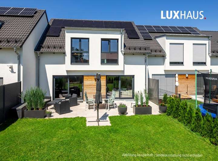 Diese moderne Doppelhaushälfte entsteht in hochwertiger LUXHAUS-Bauweise und kombiniert ein durchdachtes Raumkonzept mit erstklassiger Konstruktion und energieeffizienter Technik. Das Erdgeschoss bietet einen großzügig und offen gestalteten Wohn-, Ess- und Kochbereich mit direktem Zugang zur Terrasse. Ein separates Gäste-WC im EG ergänzen die funktionale Grundrissgestaltung.