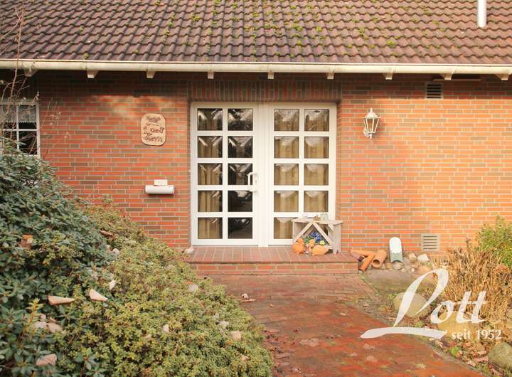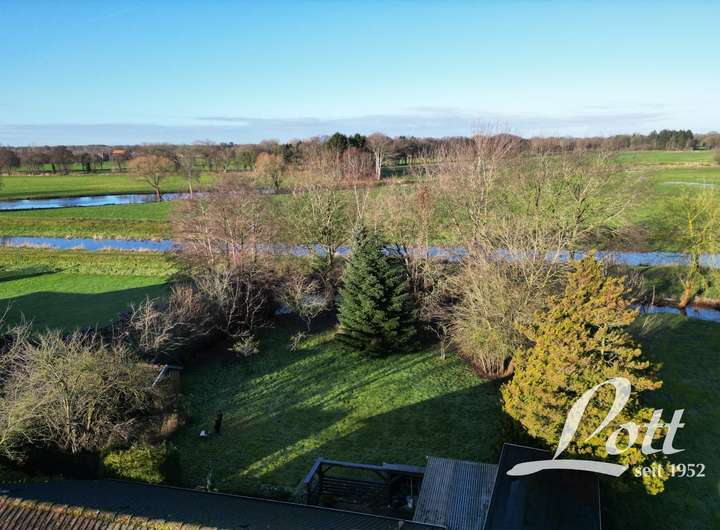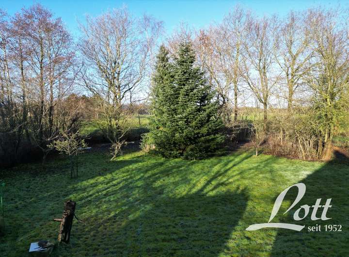 Das Grundstück grenzt rückwärtig an weitläufige Wiesen und Felder sowie an die Große Norderbäke und bietet dadurch ein ausgesprochen naturnahes Wohngefühl.