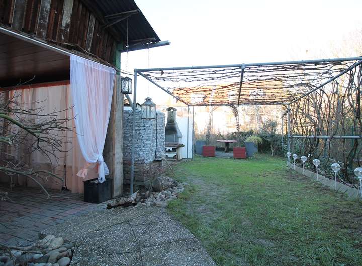 - Überdachte Terrasse hinter dem Haus