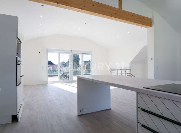Lichtdurchfluteter Wohn-/Essbereich im Dachgeschoss mit offener Küche