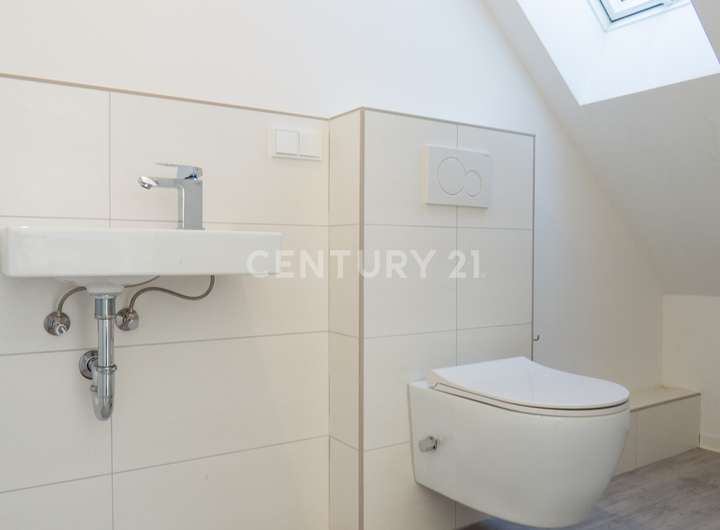 Zwei Bäder: Wannenbad + Duschbad, plus Gäste-WC im DG