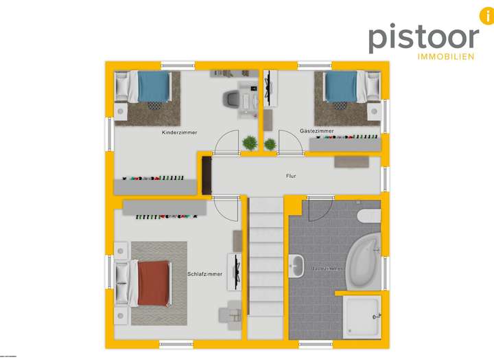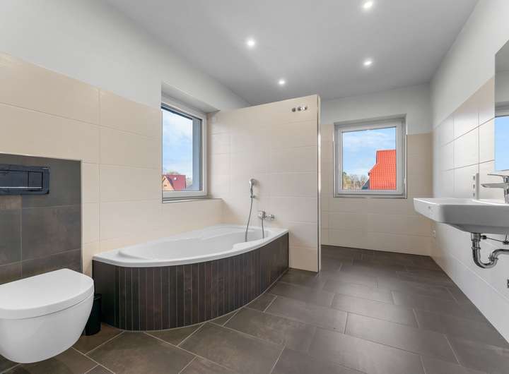 Auf ca. 128 m² Wohnfläche erwarten Dich fünf gut geschnittene Zimmer, darunter vier Schlafzimmer und zwei vollwertige Bäder – perfekt für Familien mit Kindern oder für alle, die Homeoffice, Gästezimmer oder Spielbereiche flexibel nutzen möchten. Besonders praktisch: Ein ebenerdiges Zimmer im Erdgeschoss, ideal als Arbeits-, Gäste- oder Spielzimmer.