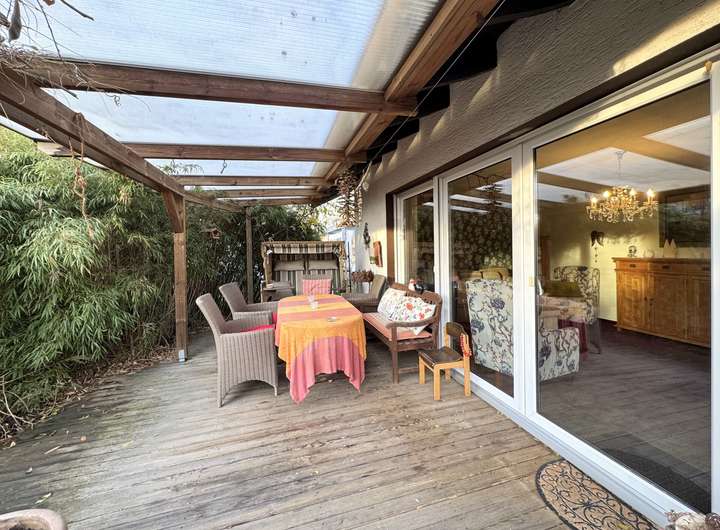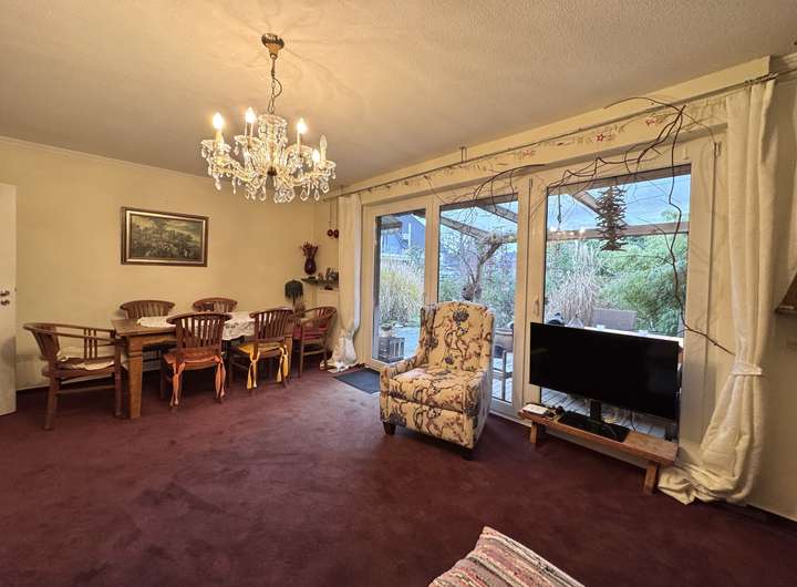 Dieser liebevoll modernisierte Bungalow bietet auf ca. 70 m² Wohnfläche ein komfortables und zugleich praktisches Zuhause in ruhiger, guter Wohnlage. Das rund 432 m² große, gepflegte Grundstück überzeugt mit seinem harmonisch angelegten Garten, viel Grün und einer teilweise überdachten Terrasse, die direkt vom Wohn- und Esszimmer aus erreichbar ist – ideal für entspannte Stunden im Freien.