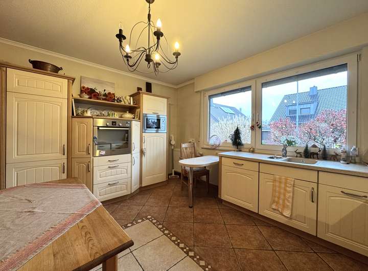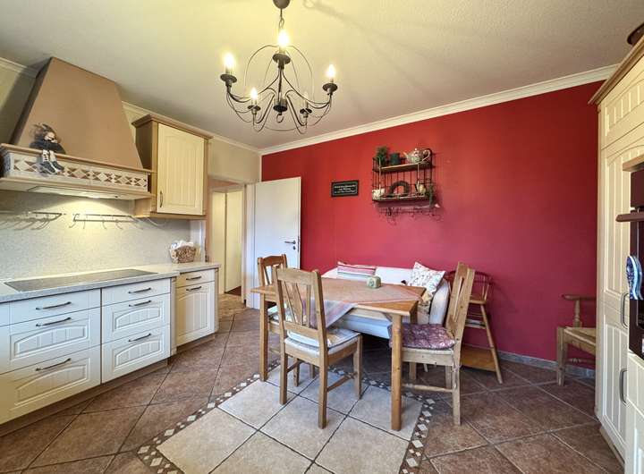Das Haus wurde 2005–2006 umfassend saniert und befindet sich in einem sehr gepflegten Zustand. Im Inneren erwarten Sie helle, freundliche Räume und eine durchdachte Raumaufteilung. Die großzügige Einbauküche bietet reichlich Platz für einen Esstisch und lädt zum gemeinsamen Kochen und Verweilen ein. Das barrierefreie Tageslichtbad ist modern ausgestattet und verfügt über eine komfortable Dusche. Ergänzt wird das Raumangebot durch ein gut geschnittenes Schlafzimmer sowie ein Wohn- und Esszimmer mit direktem Terrassenzugang und Blick ins Grüne. Ein Abstellraum mit eingebauten Regalen bietet zusätzlichen Stauraum.