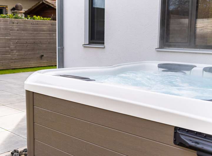 • Whirlpool von Villeroy & Boch mit eingebauter Chlordosieranlage und Soundsystem, abgeschirmt platziert