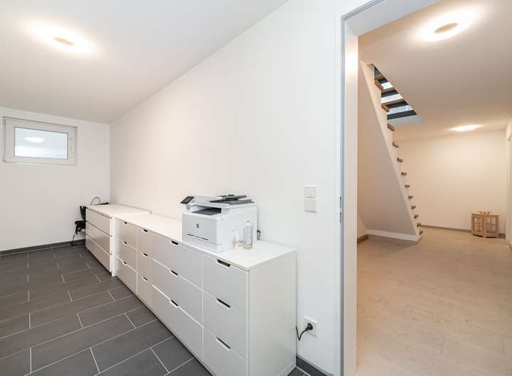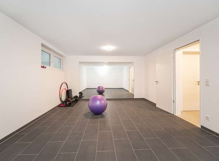 Das Untergeschoss ist als vollwertige Ebene ausgeführt: Ein Fitness-, Hobby- und Lagerraum sowie der Technikbereich bieten viel Platz und Flexibilität – unterstützt durch durchgehende Fußbodenheizung und wertige Bodenbeläge.