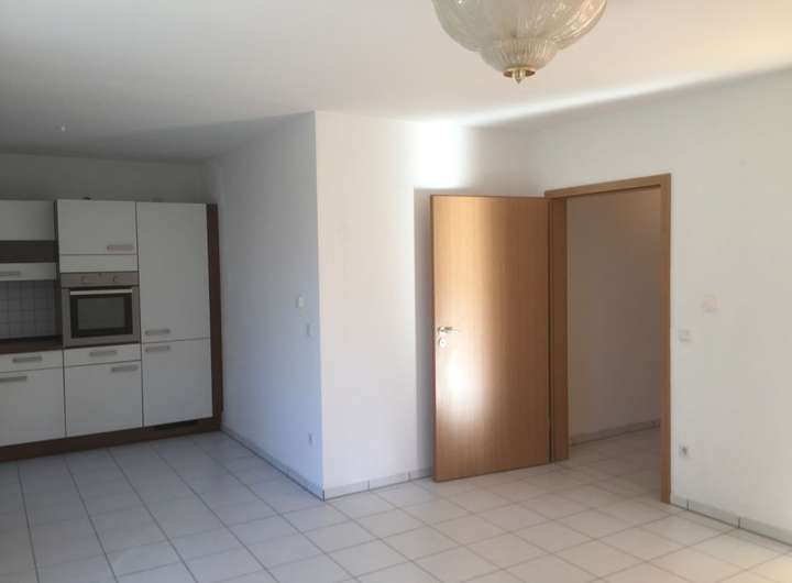 Der Wohn- und Essbereich sowie das Badezimmer sind mit weißen Fliesen, das Schlafzimmer mit Parkettboden ausgelegt. Die Wohnung ist mit Raufaser tapeziert und frisch gestrichen. Die Terrasse verfügt über eine elektrische Markise. Die Rollos sind ebenfalls elektrifiziert.
