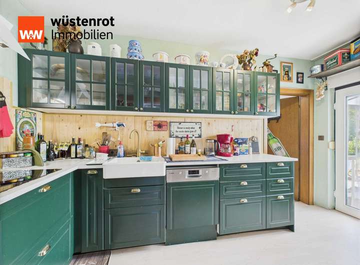 - Küche: Neuwertige Einbauküche im Farbton „Friesengrün“ inkl. Markengeräte.
