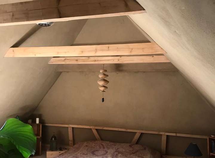 Die Wände sind mit ca. 4 cm Lehm verputzt.