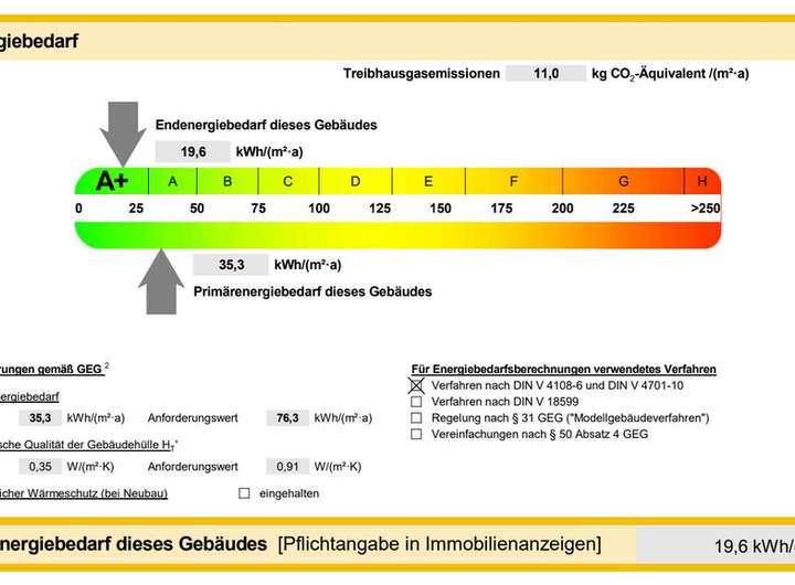 Endenergiebedarf des Gebäudes: A+ (höchster Energiestandard)