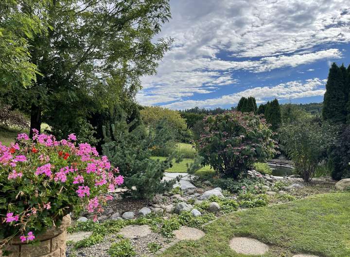 ….ich habe noch gar nicht vom Garten erzählt! Mit Naturbadesee! Er ist wie aus dem Bilderbuch, ein Traum..ein Märchen wird war. Wenn man ihn betritt möchte man bleiben…Urlaub…? Den machen Sie hier.