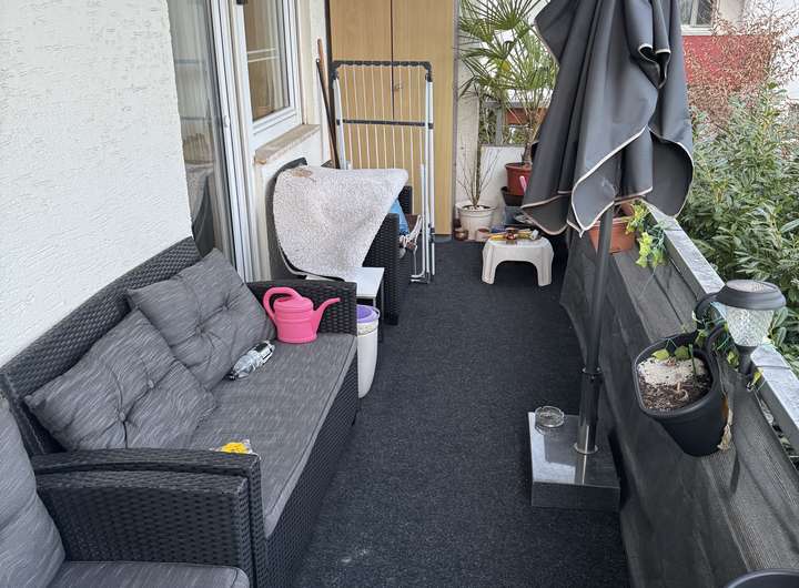 Großzügiger Balkon mit Zugang vom Wohnzimmer und Schlafzimmer