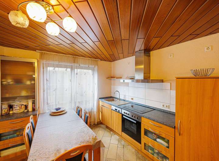 Der großzügige Wohn- und Essbereich bildet das Herzstück der Wohnung. Durch die offene Gestaltung zur Küche entsteht ein moderner, kommunikativer Lebensraum, der viel Platz für individuelle Einrichtungsideen bietet. Die vorhandene, funktionale Einbauküche ist optimal in den Raum integriert und erfüllt alle Anforderungen des Alltags.