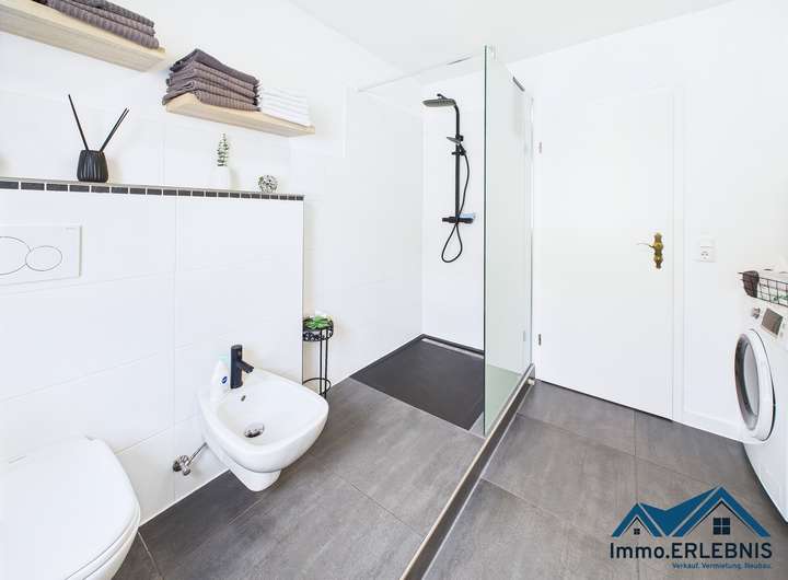 •Ein geschmackvoll renoviertes Tageslichtbad mit hochwertiger Sanitärausstattung