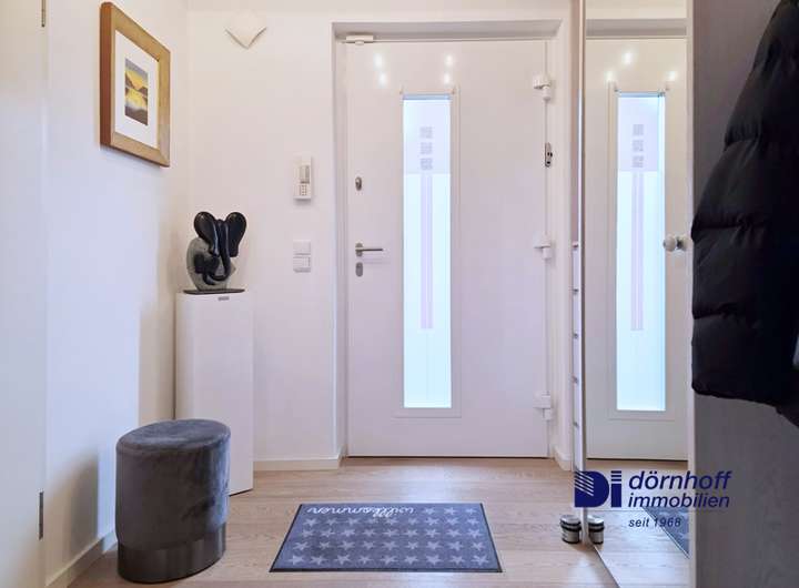 In dem Haus mit nur drei Wohneinheiten verfügt jede Einheit über einen eigenen Hauseingang, was Privatsphäre und Ruhe auf außergewöhnlichem Niveau garantiert.