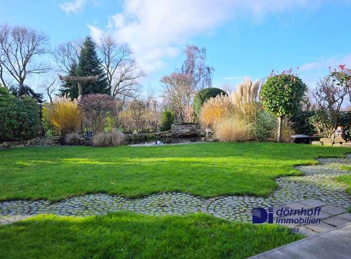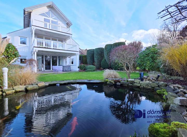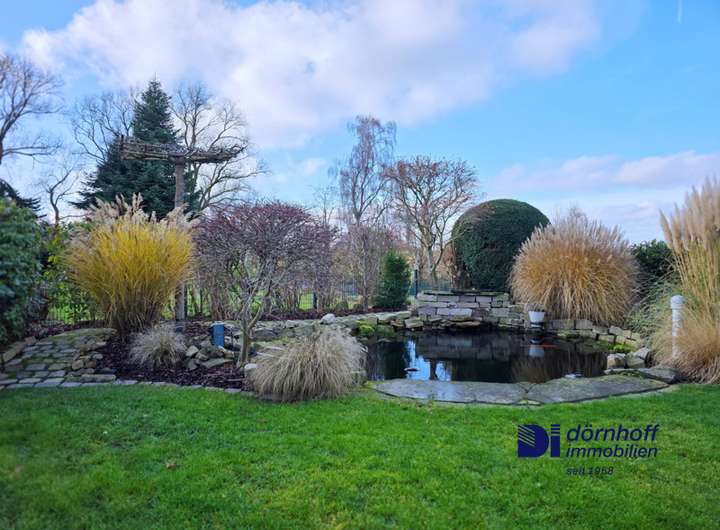 Das eigentliche Highlight dieser Immobilie ist der exklusiv angelegte, allein nutzbare Garten mit Koikarpfenteich. Ein Rückzugsort, der Ruhe, Privatsphäre und gestalterische Qualität vereint. Liebevoll geplant, perfekt gepflegt und in dieser Kombination äußerst selten – ein Ort, an dem man nicht wohnen möchte, sondern wohnen will.
