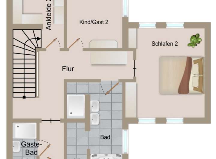 Über eine komfortable Treppe erreichen Sie das Untergeschoss, das in keiner Weise dem klassischen Kellerbegriff entspricht. Hier befinden sich helle, vollwertige Wohnräume: ein großzügiges Schlafzimmer, ein separater Ankleidebereich (räumlich eigenständig und nicht direkt mit dem Schlafzimmer verbunden), ein Gäste- bzw. Kinderzimmer sowie ein luxuriös ausgestattetes Badezimmer mit Walk-In-Dusche, Doppelwaschbecken und Whirlpoolbadewanne. Ergänzt wird dieser Bereich durch ein weiteres modernes Gäste-Bad mit Dusche. Ein separater Ausgang ins Freie schafft zusätzliche Flexibilität – ideal auch für Gäste oder eine erweiterte Nutzung.