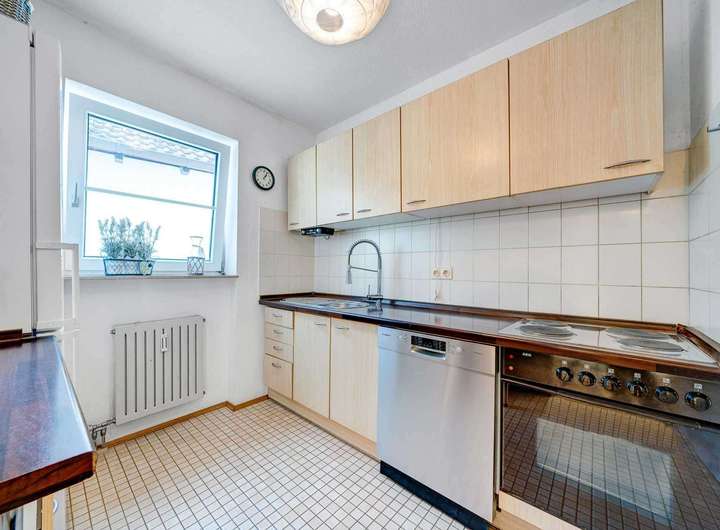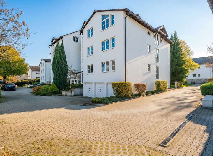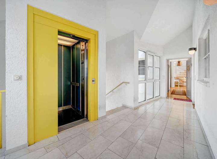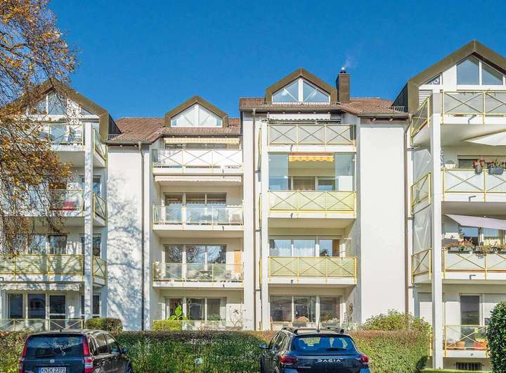 Die bezugsfreie Wohnung erstreckt sich über das 3. Obergeschoss und das Dachgeschoss eines sehr gepflegten Mehrfamilienhauses aus dem Baujahr 1986, dessen Fassade erst vor wenigen Jahren renoviert wurde. Die Maisonette-Wohnung ist bequem per Aufzug erreichbar (über einen Nebeneingang auch schwellenlos). Zur Wohnung gehören ein Kellerraum sowie zwei Kfz-Stellplätze (Kaufpreis je KFZ-Stp. 12.000 €; Gesamtkaufpreis der Wohnung inkl. KFZ-Stp. 649.000 €). Die Beheizung erfolgt über eine Gaszentralheizung, die vor etwa fünf Jahren erneuert wurde.
