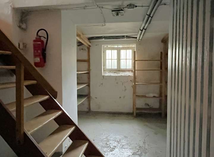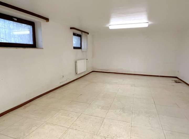 An das Wohnhaus grenzt ein eingeschossiger Büro-/Gewerbeanbau (Baujahr ca. 1976) mit voll unterkellertem Sockelgeschoss. Mehrere Büro- und Aufenthaltsräume, eine große Küche, Sanitärbereiche sowie Lager- und Archivflächen im Keller eröffnen vielfältige Nutzungsmöglichkeiten – etwa als Praxis, Büro, Atelier oder ergänzende Wohnnutzung nach entsprechender Umplanung und Genehmigung.