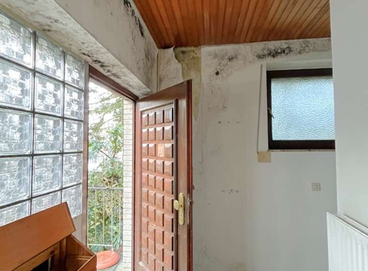 Das gesamte Anwesen befindet sich in einem deutlich sanierungsbedürftigen Zustand. Neben der Modernisierung von Dach, Fenstern, Bädern und Küchen sind auch die Haustechnik (Heizung, Elektro, Sanitär) sowie die Flachdachbereiche des Anbaus erneuerungsbedürftig. Feuchte- und Nutzungsspuren, insbesondere im Anbau und im Dachbereich, machen eine umfassende Modernisierung erforderlich.