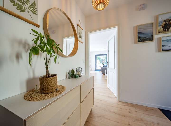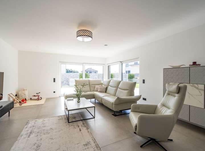 Die Ausstattung dieser Stadtvilla ist luxuriös und durchdacht. Hochwertige Bodenbeläge aus Fliesen und optionalen Materialien bieten sowohl Funktionalität als auch Eleganz. Die Fliesen sind pflegeleicht und langlebig, während Sie durch die Wahl von Bodenbelägen nach Wunsch zusätzliche Akzente setzen können. Die Befeuerungsart Wärmepumpe sorgt für eine effiziente und umweltfreundliche Heizlösung, die nicht nur Ihre Energiekosten senkt, sondern auch den KFW40 Standard erfüllt - ein Zeichen für höchste Energieeffizienz.