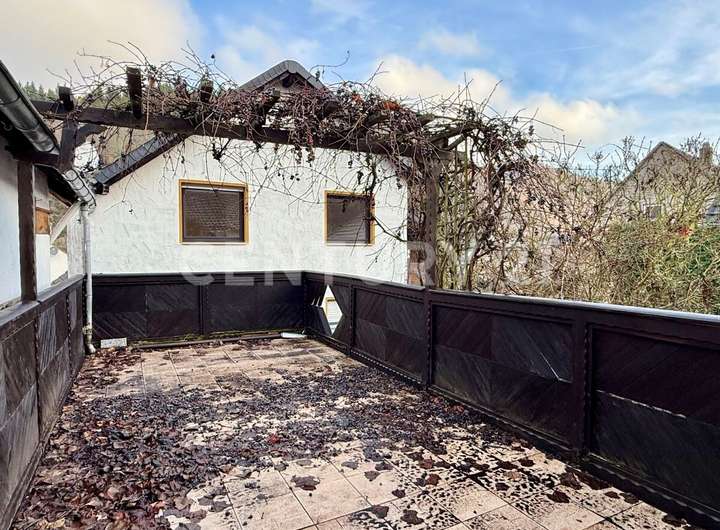 Die Immobilie benötigt eine umfassende Renovierung: frische Bodenbeläge, neue Türen mit Zargen, Fenster und eine modernisierte Elektrik stehen auf der To-do-Liste. Auch das Badezimmer bedarf einer vollständigen Sanierung. Für eine effiziente Energieversorgung empfiehlt es sich, die Fassade und die oberste Geschossdecke zu dämmen. Aus dem vorhandenen Wintergarten und der Dachterrasse lässt sich auch wieder ein schöner Platz zum verweilen erstellen.