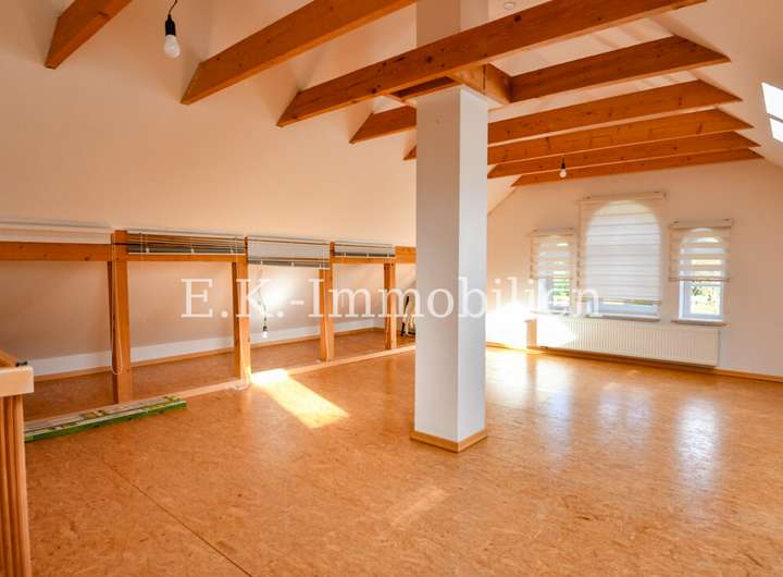 EG: 2 Flure, Tageslichtbad, Küche, Esszimmer, Wohnzimmer, Schlafzimmer, extra Raum im Dachgeschoss