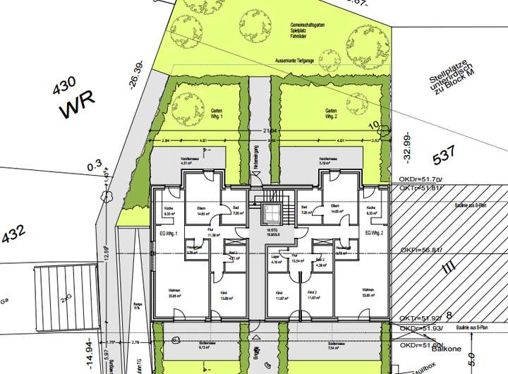Die Planung sieht den Neubau eines Mehrfamilienhauses mit 11 Wohneinheiten sowie einer Tiefgarage mit 12 Stellplätzen vor. Insgesamt können rund 996 m² Wohnfläche geschaffen werden (vgl. Wohnflächenberechnung ).
