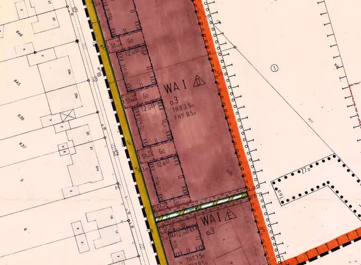 Das Baufenster umfasst ca. 8 Meter Breite und 12 Meter Tiefe und bietet damit ideale Voraussetzungen für eine moderne, großzügige Grundrissgestaltung. Der Bebauungsplan sieht eine 1,5-geschossige Bauweise vor. Durch einen angehobenen Drempel oder eine geschickt gesetzte Gaube lässt sich im Obergeschoss eine vollwertige Wohnfläche realisieren, wie man sie sonst nur bei größeren Häusern findet.